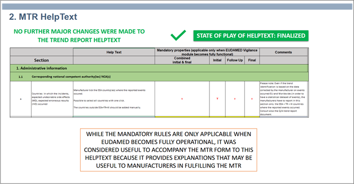 Un document d'aide pour le MTR sera également mis à disposition, pour aider les fabricants à remplir le formulaire.